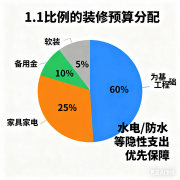 装修超支多因规划混乱,掌握5个技巧能精准控成本。首先定总预算后按“60-25-10-5”法则拆分:60%投水电、防水等基础工程,这些“隐性支出”省不得;25%买家具家电,10%配软装,留5%备用金应对突发情况。