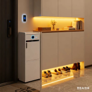 推开门,玄关AI感应系统已按室外温度调好空调,暖黄色氛围灯同步亮起。鞋柜旁的智能收纳柜,能通过摄像头识别鞋型、分配空间,还会提醒清洁周期。